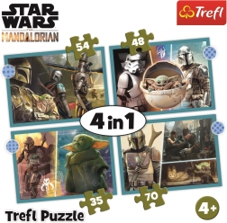 Fedezd fel a szórakozást a 4 az 1-ben puzzle készlettel, amelyet a STAR WARS: THE MANDALORIAN világa ihletett. Négy különálló kirakó eltérő darabszámmal (35, 48, 54, 70) kihívást nyújt a kisebbeknek és a nagyobbaknak egyaránt. Minden motívum mérete 285 × 205 mm, és örömet szerez a legendás saga kis rajongóinak. Lengyelországban készült környezetbarát anyagokból, 4 éves kortól ajánlott.