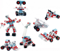 Moduláris tartóelemek, csatlakozók, kerekek és csavarok teszik lehetővé az ismételt átépítést. Ideális a finommotorika és a műszaki gondolkodás fejlesztésére.