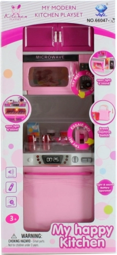 Vezesse gyermekét a képzelet világába az "Az én modern konyhám" játékkészlettel, amely tartalmaz egy mikrohullámú sütőt és mosogatógépet, interaktív funkciókkal és műanyag edénykészlettel.