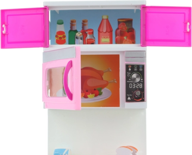 - A mikrohullámú sütő világít és hangokat ad ki, ami fokozza a valósághű hatást.