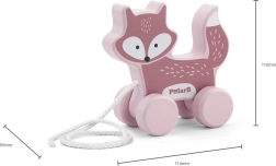 A kerekeken guruló fa róka tökéletes társ a kis felfedezőknek. A kellemes pasztellszíneknek és a masszív fa szerkezetnek köszönhetően mozgásra ösztönöz, javítja a egyensúlyt és a koordinációt, valamint fejleszti a durva- és finommotorikát.