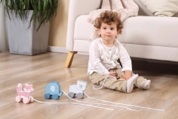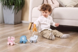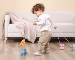 A húzójáték könnyű, könnyen megfogható és biztonságos – sima élekkel és minőségi felületkezeléssel. Otthonra és lakáson belüli „sétákhoz” egyaránt kiváló. Kompakt mérete megkönnyíti a tárolást és a hordozást.