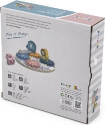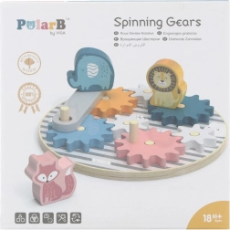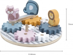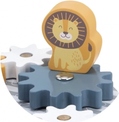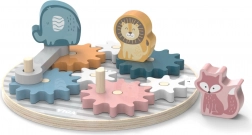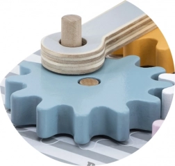 Támogassa a szórakozást és fejlődést a fa fogaskerekes kockáinkkal, ahol a mechanika játéká válik. A készlet tartalmaz 7 színes fogaskerekes elemet, 3 szórakoztató állatfigurát és egy alaplapot, amelyre helyezheti a fogaskerekeket úgy, hogy egy elmozdítása mozgásba hozza a többieket.