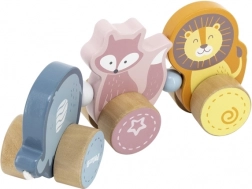 Az elefánt, a róka és az oroszlán kis szerelvénnyé kapcsolva fejleszti a képzelőerőt és alkotó játékra ösztönöz.
