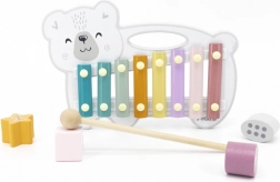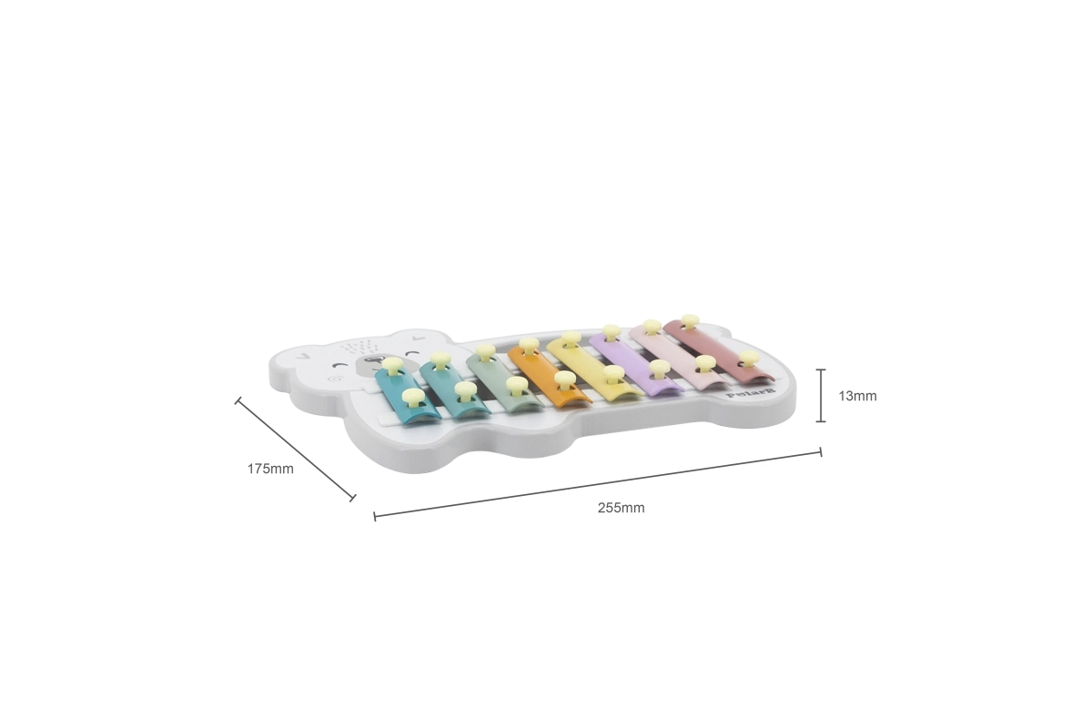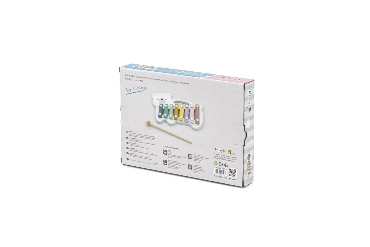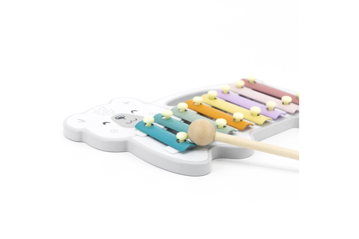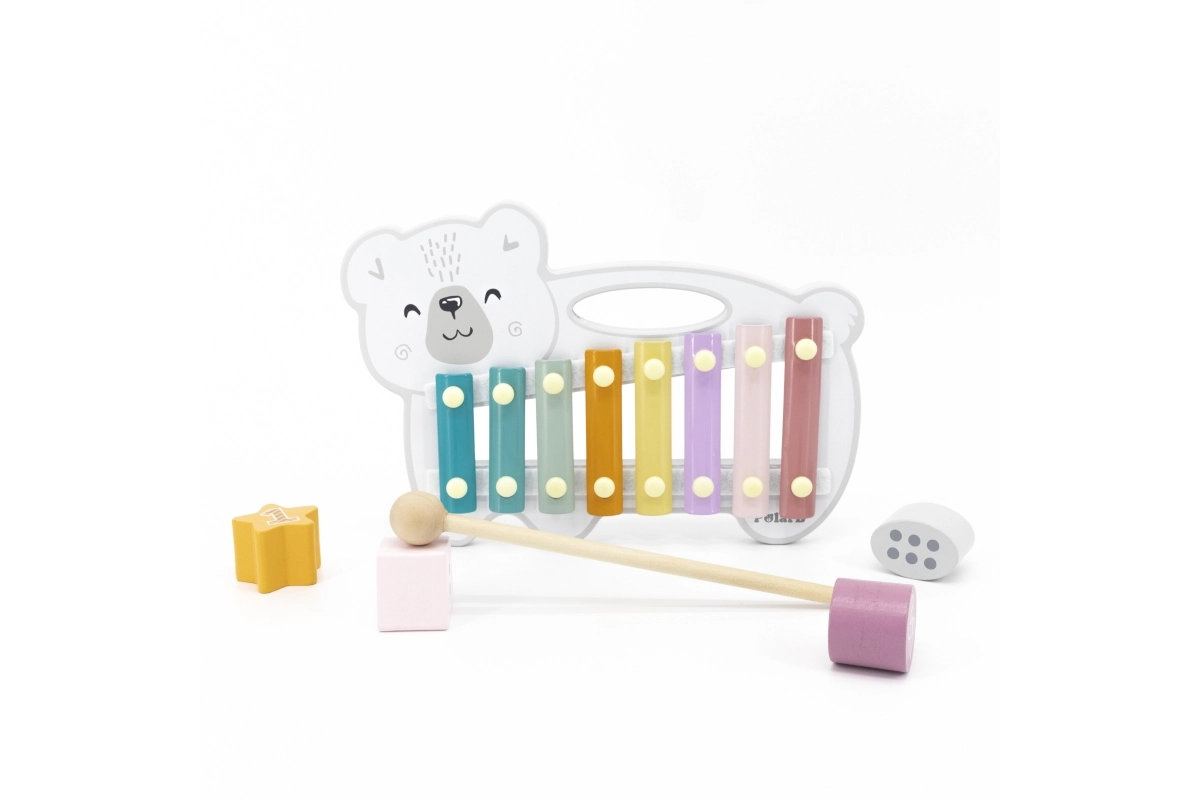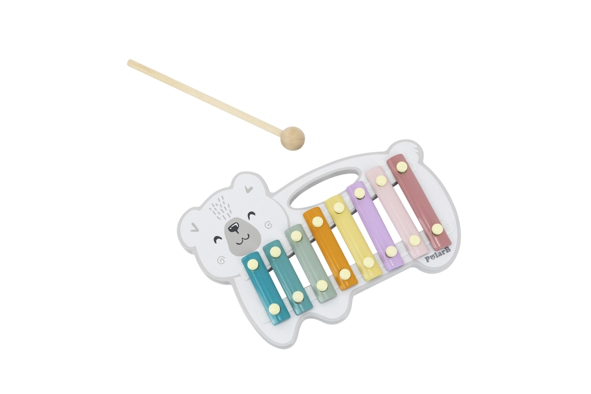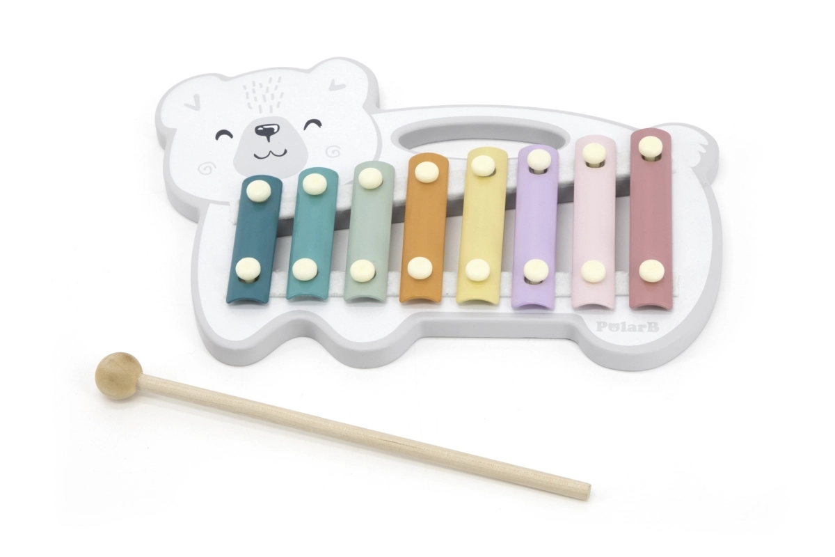 A jegesmedve alakú fa xilofon játékos esztétikát ötvöz egy teljes értékű hangszerrel. A pasztellszínű fém lamellák kellemes hangokat adnak a fa ütővel való megütéskor, így a gyerekeket természetesen ösztönzik a hangokkal és ritmussal való kísérletezésre.