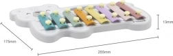 Tartós szerkezet, lekerekített élek és kompakt méret biztosítja a biztonságos, kényelmes játékot a legkisebbeknek is. A xilofon remek választás a zenei érzék, a koncentráció és a türelem fejlesztéséhez.