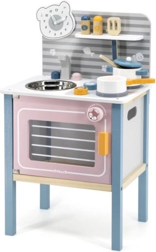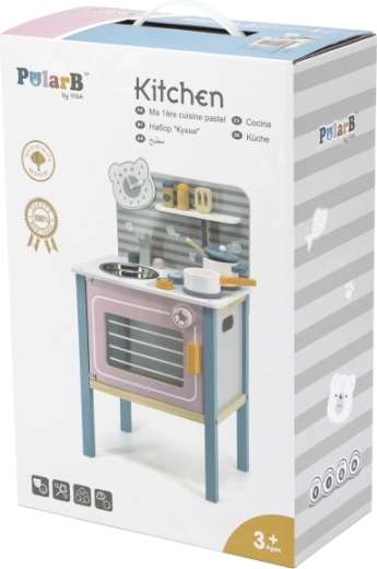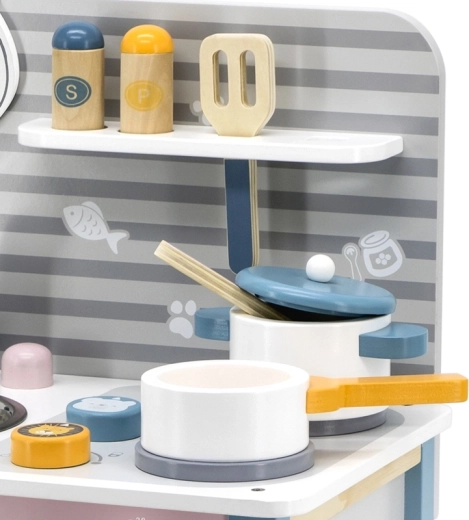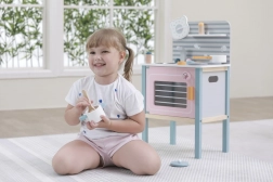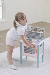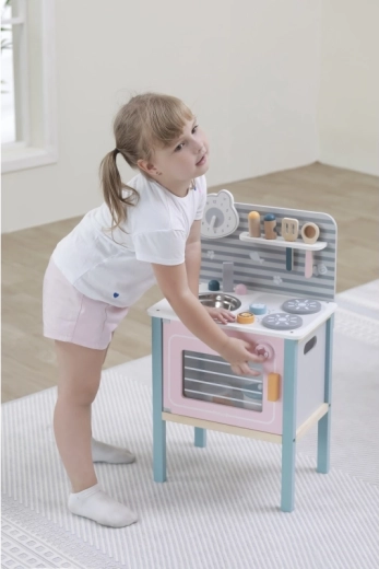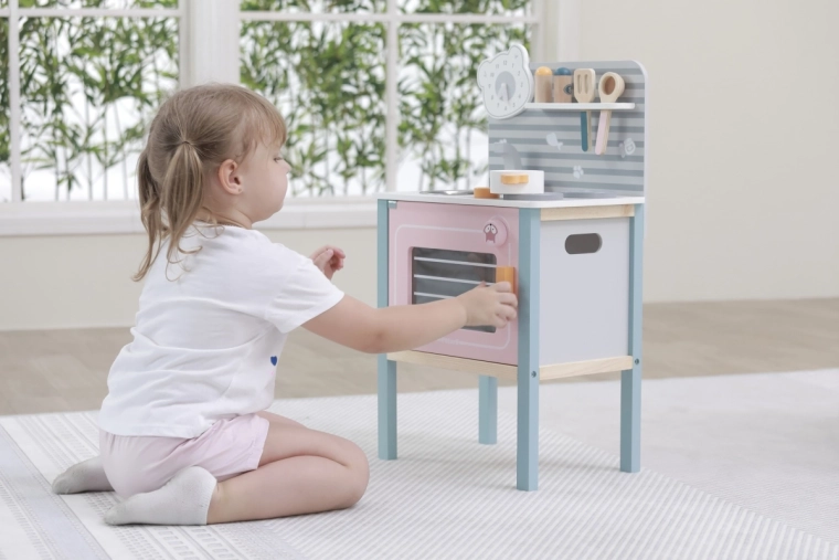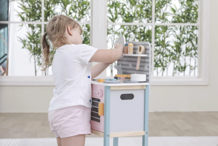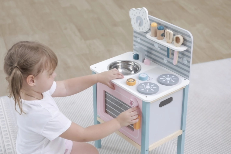 A konyha biztonságos játékra van tervezve három éves kortól, támogatja a finommotorika fejlődését és az utánzási képességet.