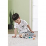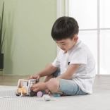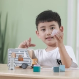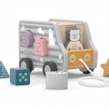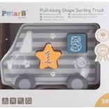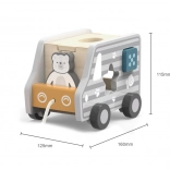 Fából készült húzható és formabedobó játék teherautó alakban. Méretek kb. 18 × 12 × 6,5 cm. Csomagolás mérete kb. 19 × 16,5 × 13,5 cm. Ajánlott életkor: 18 hónap+