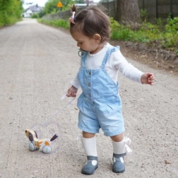 A húzható kutyus sétára ösztönzi a gyerekeket, erősíti a koordinációt, és megtanítja őket az egyensúly tartására. A kényelmes húzózsinórnak köszönhetően a húzás természetes és szórakoztató.