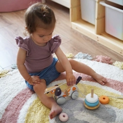 A játék fejleszti a koordinációt, a kreativitást és a képzelőerőt, és szépen kiegészíti a visszafogott színű fából készült játékok gyűjteményét. Ideális a mindennapi játékhoz otthon és útközben is.