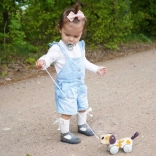 A VIGA POLARB kollekció húzózsinóros fa kutyusa elkíséri a gyerekeket első sétáikon, és minden lépést játékká varázsol. A kerekek gumiborításának köszönhetően a gurulás csendes és egyenletes, és amikor a gyerek meghúzza, a farka vidáman csóvál.