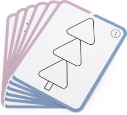 - Teljes készlet: fa formák, forgatható tábla, feladatkártyák és textil tasak.