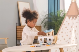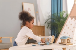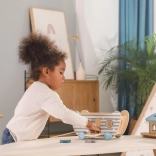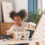 Minőségi fa, lekerekített élek és kellemes színek biztosítják a biztonságos játékélményt a legkisebbek számára is. Ideális a gyerekszobába és utazáshoz.