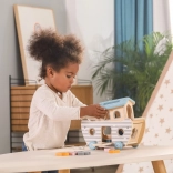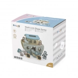 A készlet gazdag állat- és alakválasztékkal érkezik, amelyeket a gyerekek a megfelelő nyílásokba illesztenek. Támogatja az alakfelismerést, a türelmet és a koordinációt.