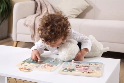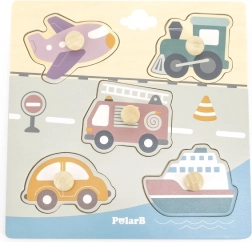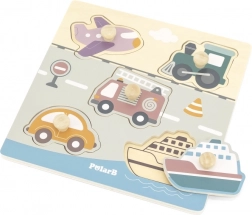 Fa berakós játék közlekedési eszközök motívummal. A fa tábla mérete kb. 22 x 22 cm. A csomagolás mérete kb. 22 x 22 x 2,5 cm. Ajánlott életkor: 18 hónap+