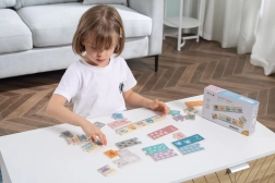 Ez a fából készült, fejlesztő készlet játékos formában támogatja a korai tanulást. A gyerekek az építés közben megismerik a színeket, tanulnak számolni és gyakorolják a logikus gondolkodást. Az állatkás, számozott vagonokból álló vonat természetesen segít megérteni a számok sorrendjét.