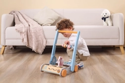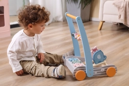 A fából készült járássegítő állatkákkal remek társ gyermeke első lépéseihez. A masszív felépítés biztonságot és stabilitást nyújt, az ergonomikus fogantyú pedig megkönnyíti a biztonságos megfogást. A járássegítő előre és hátra is tolható, így alkalmazkodik a kisgyermekek tempójához és készségeihez.