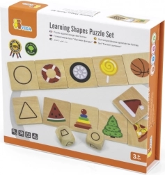 A VIGA fa oktató puzzle a gyerekek kognitív és motorikus képességeinek fejlesztésére fókuszál. A minőségi, természetes fából készült elemeket nem mérgező festékekkel kezelték, így biztonságosak a gyermek számára. A készlet különböző formákat tartalmaz, amelyeket a gyerekek mindennapi tárgyakhoz párosítanak, például virágcserép (trapéz) vagy pizzaszelet (háromszög).