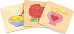 A VIGA oktató játék fa kirakó ideális módot kínál a gyerekek számára gondolkodásuk és koordinációjuk fejlesztésére. A feladat a tárgyak hozzárendelése a kiválasztott érzékekhez, ami változatos mindennapi objektumokat foglal magában.