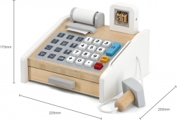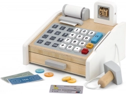 A pénztárgép valósághű dizájnnal rendelkezik, kijelzővel és kihúzható fiókkal, ami igazi használat érzést nyújt a gyerekeknek.