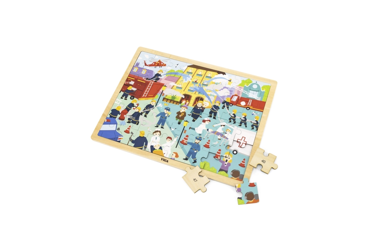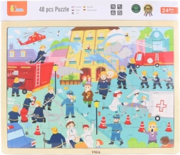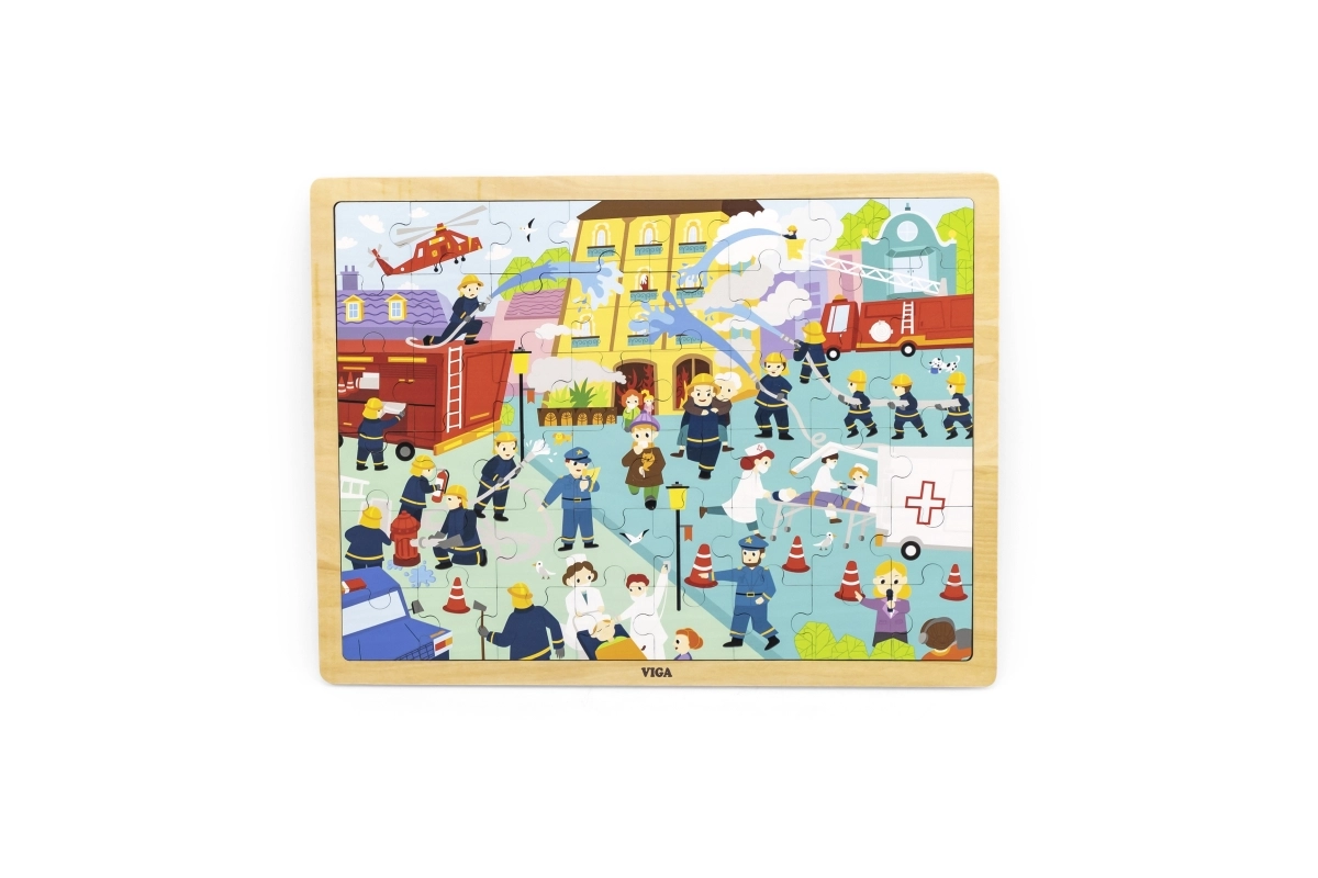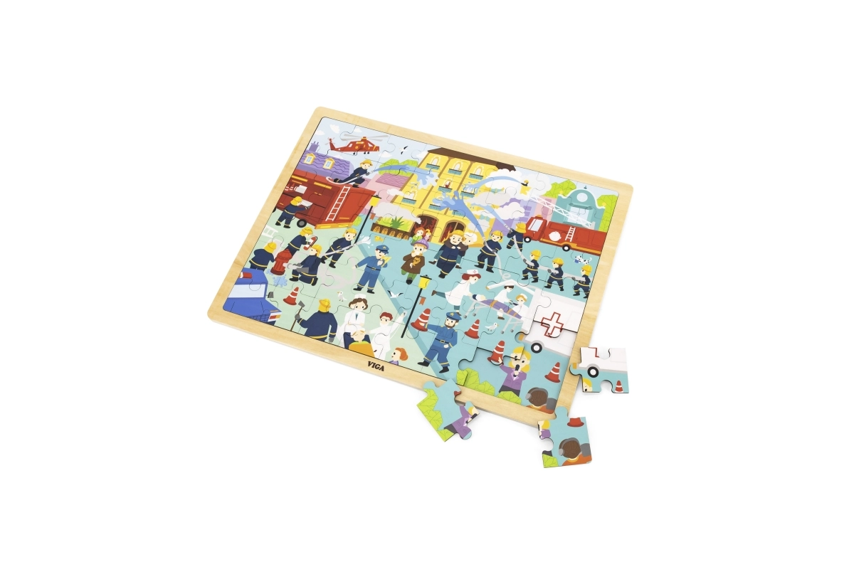 Fedezze fel a szórakoztató fa puzzle-t tűzoltó motívummal, amely játékos formában ismerteti meg a gyerekeket a mentők világával. A 48 masszív darabnak és a praktikus fa keretnek köszönhetően a kirakó fejleszti a finommotorikát, a logikus gondolkodást és a türelmet. Ideális 24 hónapos kortól.