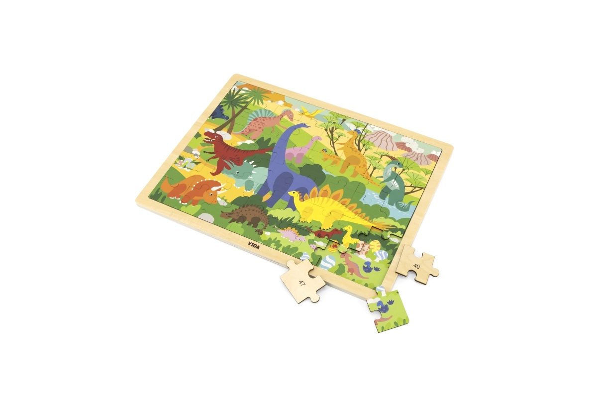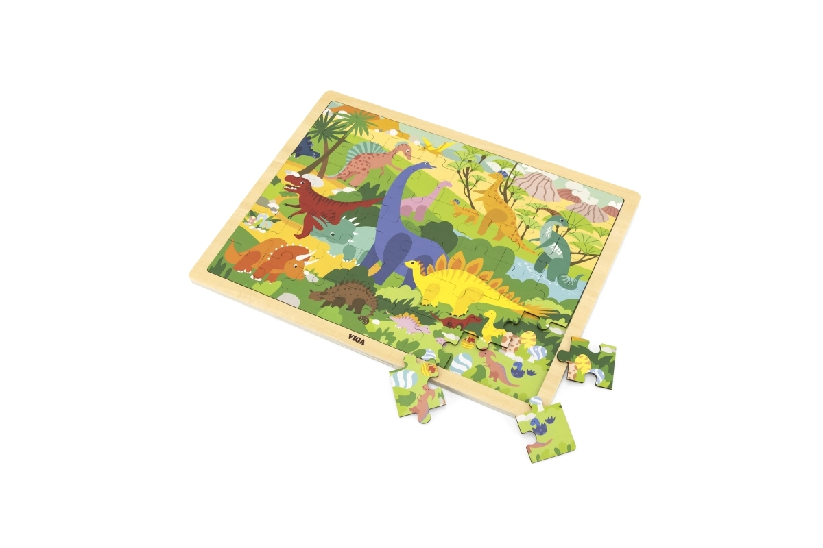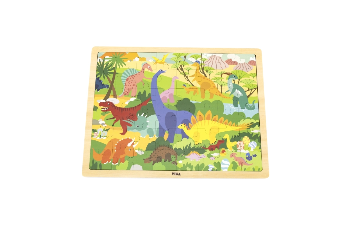 Ajándékozd meg a gyerekeket szórakoztató és fejlesztő élménnyel a dinoszaurusz motívumos fa kirakóval. A 48 darabnak köszönhetően ideális első „nagyobb” kirakónak, amely fokozatosan fejleszti a készségeket és növeli a kicsik önbizalmát. A darabok masszívak, jól kézben tarthatók, és kényelmesen elhelyezhetők a keretes fa alaplapon.