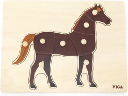 A ló élethű motívumával készült Montessori beillesztő önálló felfedezésre és koncentrációra ösztönzi a gyerekeket. A praktikus fogantyúknak köszönhetően könnyen megfogják az egyes elemeket, megtanulják felismerni az alakzatokat, és gyakorolják a pontos mozdulatokat. A természetes fa és a barna ló kontrasztja jól kirajzolódó körvonalakat ad, amelyek játékra csábítanak.