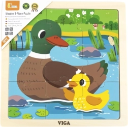 A kacsa és a kiskacsa vidám illusztrációja motiválja a gyerekeket a kirakásra, és fejleszti a színek és a részletek észlelését.