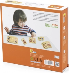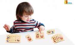 A természetes fából készült biztonságos és masszív elemek kellemes tapintásúak, a színes grafika pedig fenntartja a kicsik figyelmét. A készlet kiváló a gyerekszobába és óvodákba is didaktikai eszközként a mindennapos játékhoz.