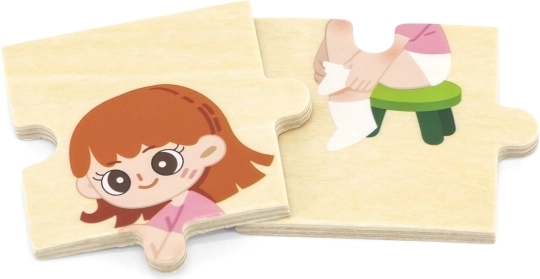 Fedezze fel a szórakoztató módját annak, hogyan taníthatjuk meg a gyerekeknek az öltözködés helyes sorrendjét. Ez a VIGA márkájú, 28 darabból álló fa puzzle készlet fejleszti a logikus gondolkodást, a finommotorikát és a kéz–szem koordinációt. A strapabíró fa kivitel és a biztonságos kidolgozás ideális a 18 hónapos kortól.