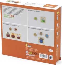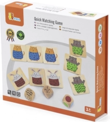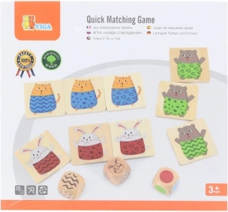 Gyors párosító fa játék a VIGA márkától – családi társasjáték, amely fejleszti a megfigyelést, a logikát és a memóriát. A játékosok 1–3 dobókockával dobnak, és megkeresik a megfelelő állatkát a hozzá illő pólómintával és színnel. Minőségi fából készül, nem mérgező festékekkel színezve – biztonságos a gyermekek számára.