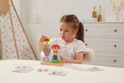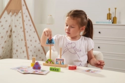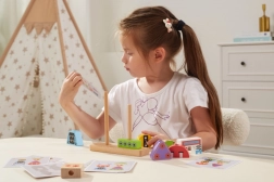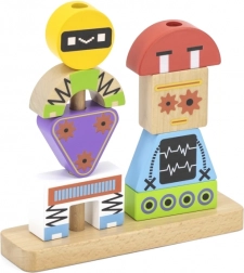 Fedezze fel az okos játékot, amely együtt nő a gyerekekkel. A különböző formájú és színű faelemek könnyen felhelyezhetők az alap tüskéire, és különféle robotfigurák építését teszik lehetővé. A mellékelt mintakártyák az egyszerűtől az összetettebb kombinációkig vezetnek, fejlesztve a koncentrációt és a türelmet.