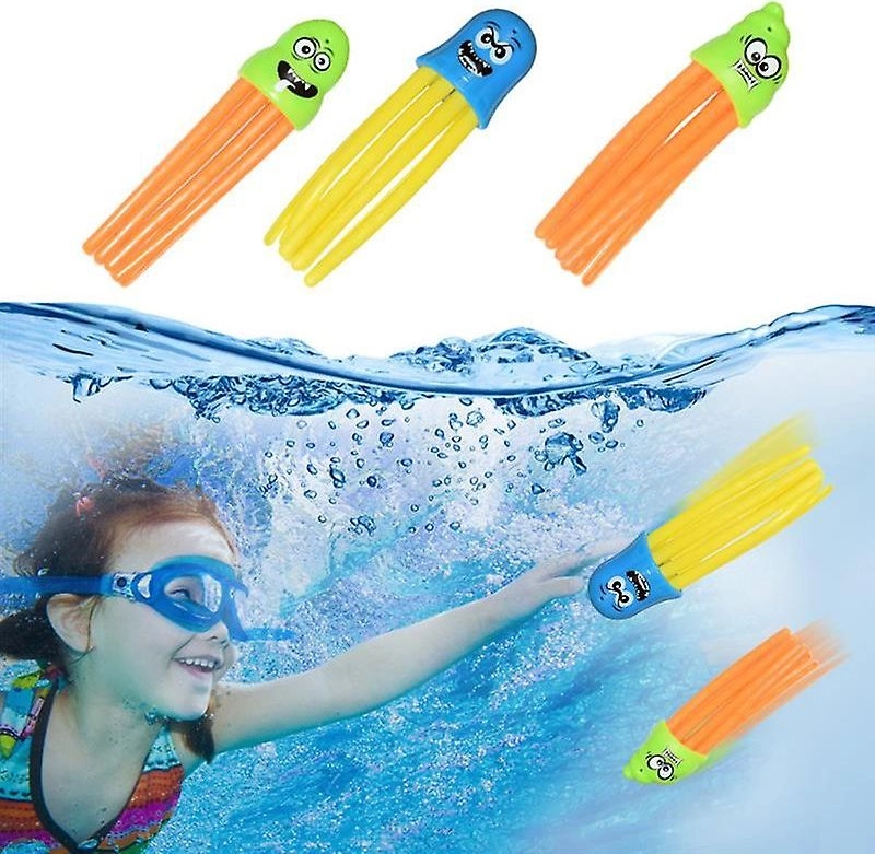 Szórakoztató, 6 darabból álló színes polipocska-készlet gyerekeknek, amelyek vízbe dobás után gyorsan lesüllyednek az aljára, és támogatják a merülési gyakorlatot és a úszókészségek fejlesztését. Ideális medencébe vagy strandoláshoz felnőtt felügyelete mellett.