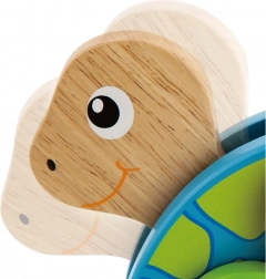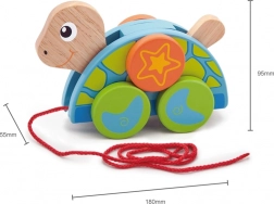 Ez a színes fahúzós teknős úgy készült, hogy motiválja a gyerekeket a járásra, támogassa a mozgáskoordinációt, és természetes módon fejlessze a finom- és nagymozgásokat. A masszív fa kivitel és a kellemesen lekerekített élek biztonságos játékot nyújtanak, míg a feltűnő színek és a játékos design ösztönzik a vizuális érzékelést.
