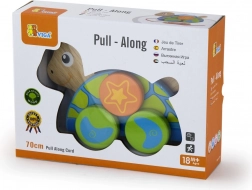 A teknőc könnyű, könnyen megfogható, és az ideális hosszúságú, erős húzózsinórnak köszönhetően simán gurul különböző felületeken. Otthoni első lépésekhez és útközben is kiváló, kompakt mérete miatt pedig egyszerűen tárolható.