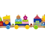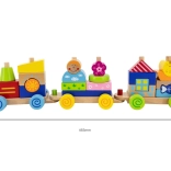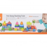 Játékos, 2 az 1-ben fa mozdony, amely ötvözi a húzós játékot és a építőkészletet színes kockákkal. Támogatja a finommotorikát, a logikát és a kreatív játékot 18 hónapos kortól. Az erős zsinórnak köszönhetően a gyerekek könnyen magukkal vihetik bárhová.