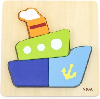 A Viga fa mini kirakó ideális első puzzle kisgyermekeknek és óvodásoknak. A négy színes darab pontosan illeszkedik az alaplap kimart formájába, és kirakás után vidám hajó képet alkot. Az egyszerű formák és az élénk színek motiválják a gyerekeket az ismételt kirakásra, és fejlesztik természetes kíváncsiságukat.