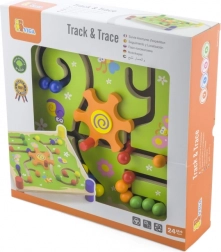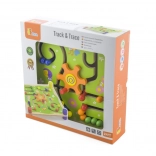 Az Üsd és Kövesd játék célja a kézügyesség és szem-kéz koordináció fejlesztése. A gyerekeket arra ösztönzik, hogy a csapokat a táblára helyezzék a mellékelt hat kártya mintái alapján.