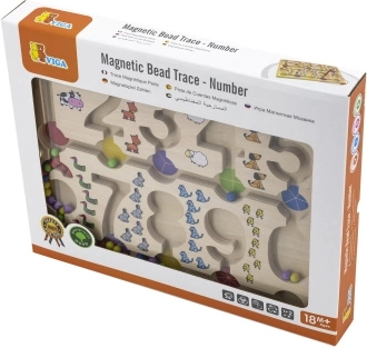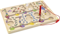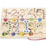 Fedezze fel a tanulás és szórakozás világát a Mágneses labirintus - Számok segítségével. Ez a fából készült tábla számjegyekkel és színes gyöngyökkel remek lehetőséget biztosít a gyerekek számára, hogy fejlesszék matematikai készségeiket és finommotorikájukat.