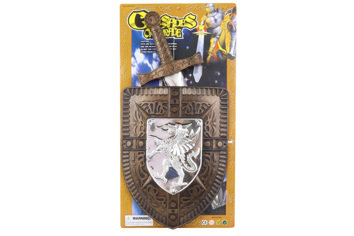 A csomag tartalma: 1× műanyag kard, 1× műanyag lovagi pajzs, kártyára szerelve.