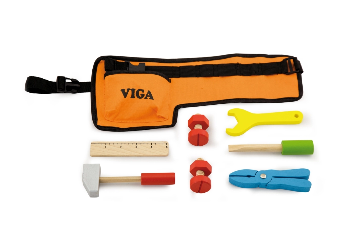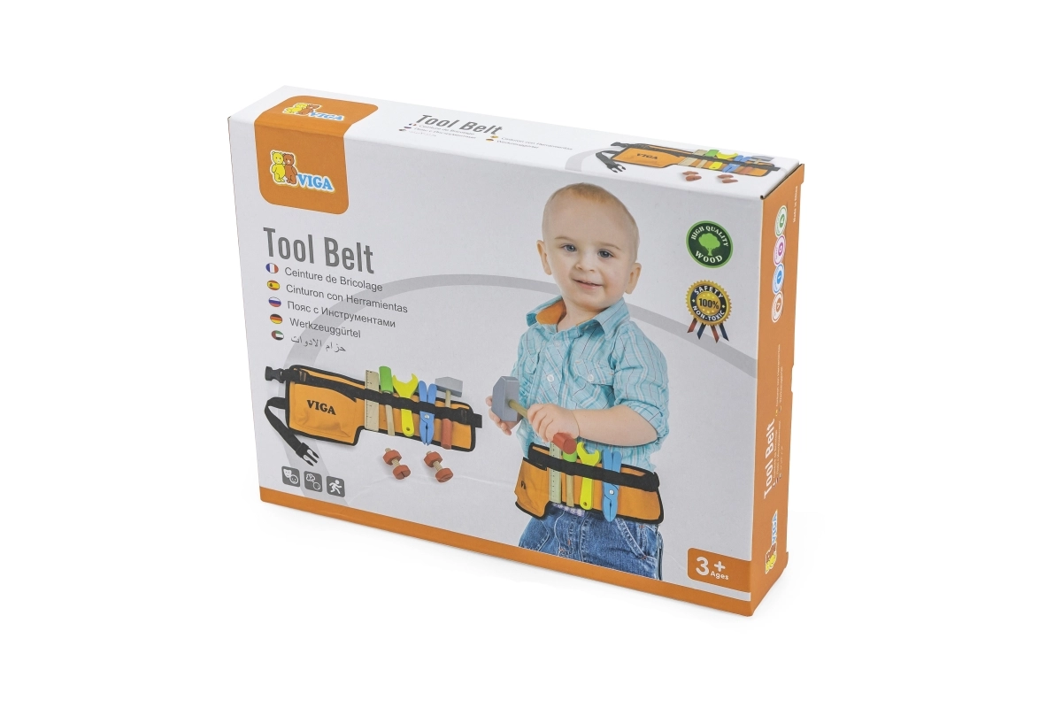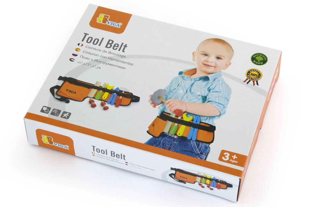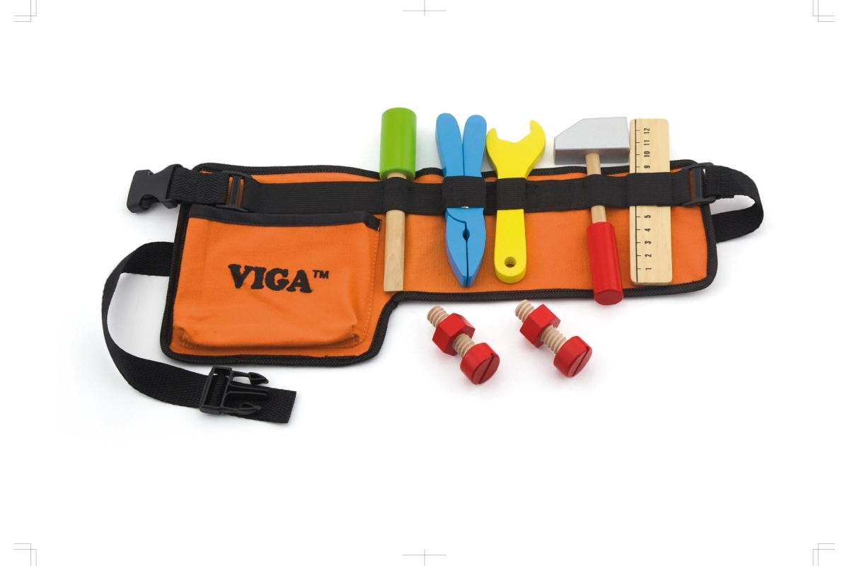 A fa szerszámokkal ellátott derékszíj tökéletes kiegészítő minden kis ezermester számára. Ez a derékszíj különféle fa szerszámokkal van felszerelve, beleértve a kalapácsot, csavarkulcsot, csavarhúzót, mérőszalagot, csavarokat és anyákat, valamint fogót. Kiválóan alkalmas a képzeletbeli szerelési munkálatokhoz és játékhoz.