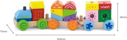 A biztonságos fa kivitel, a sima élek és az élénk színek játékra és újra meg újra történő rakosgatásra csábítanak. A játék segít gyakorolni a formafelismerést és válogatást, a számolást, valamint a saját kombinációk alkotását – az egyszerű építéstől egészen a kreatív „vonatos” történetekig.