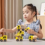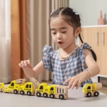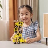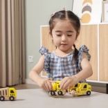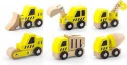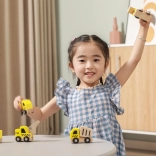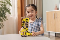 Ez a minőségi készlet 6 különböző építőjárművet tartalmaz élénk sárga színben, természetes fa elemekkel – ideális az első padlón zajló versenyekhez és az építkezéses szerepjátékhoz. A lekerekített formáknak és a strapabíró fa szerkezetnek köszönhetően az autók biztonságosak és kellemes tapintásúak.