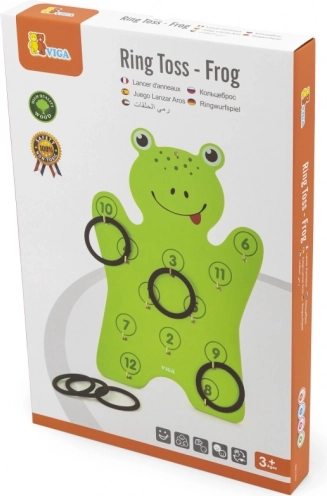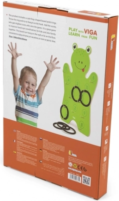 A csomag tartalma egy béka alakú fa tábla és 6 karika – csak bontsd ki, és már kezdődhet is a dobálás.