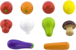 Ez a fa gyümölcs- és zöldségkészlet tökéletes játék a kis szakácsok számára. Minden gyümölcs és zöldség gondosan készül, minőségi fából és biztonságos festékekkel van festve, amelyek kisgyermekek számára is alkalmasak.