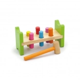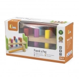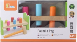 A csomag fa kalapácsot és többszínű pöcköket tartalmaz a hosszan tartó szórakozáshoz.