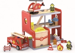 Ez a részletgazdagon kidolgozott, fából készült tűzoltóállomás autentikus környezetet kínál mentőakciókhoz. A több szintű, piros állomásnak, a létrás autónak és a helikopter-leszállónak köszönhetően a gyerekek könnyedén kitalálhatják saját történeteiket, miközben fejlesztik koordinációjukat és logikus gondolkodásukat.