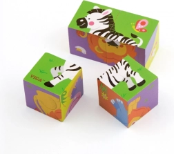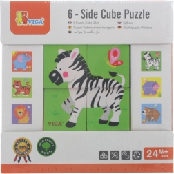 A VIGA Zoo fa kirakó ideális első puzzle 2 éves kortól. Négy masszív kocka együtt hat vidám állatillusztrációt alkot, amelyek felfedezésre hívnak és fejlesztik a képzeletet. A játék intuitív, szórakoztató, és kiválóan edzi a koncentrációt és a türelmet.