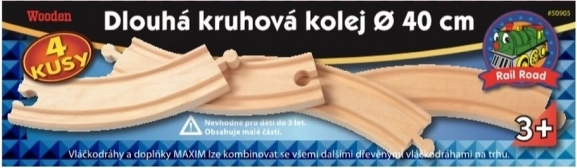 A csomag 4 darab, 40 cm átmérőjű kör sínpályát tartalmaz. Csomagolás: doboz. Csomag mérete: 190×55×55 mm. 3 éves kortól ajánlott, apró alkatrészeket tartalmaz.