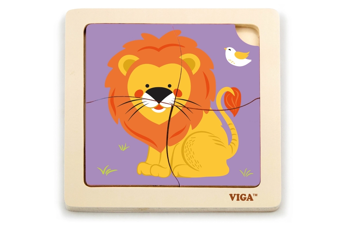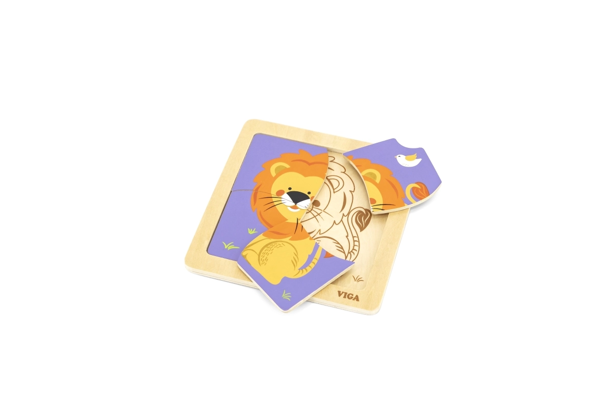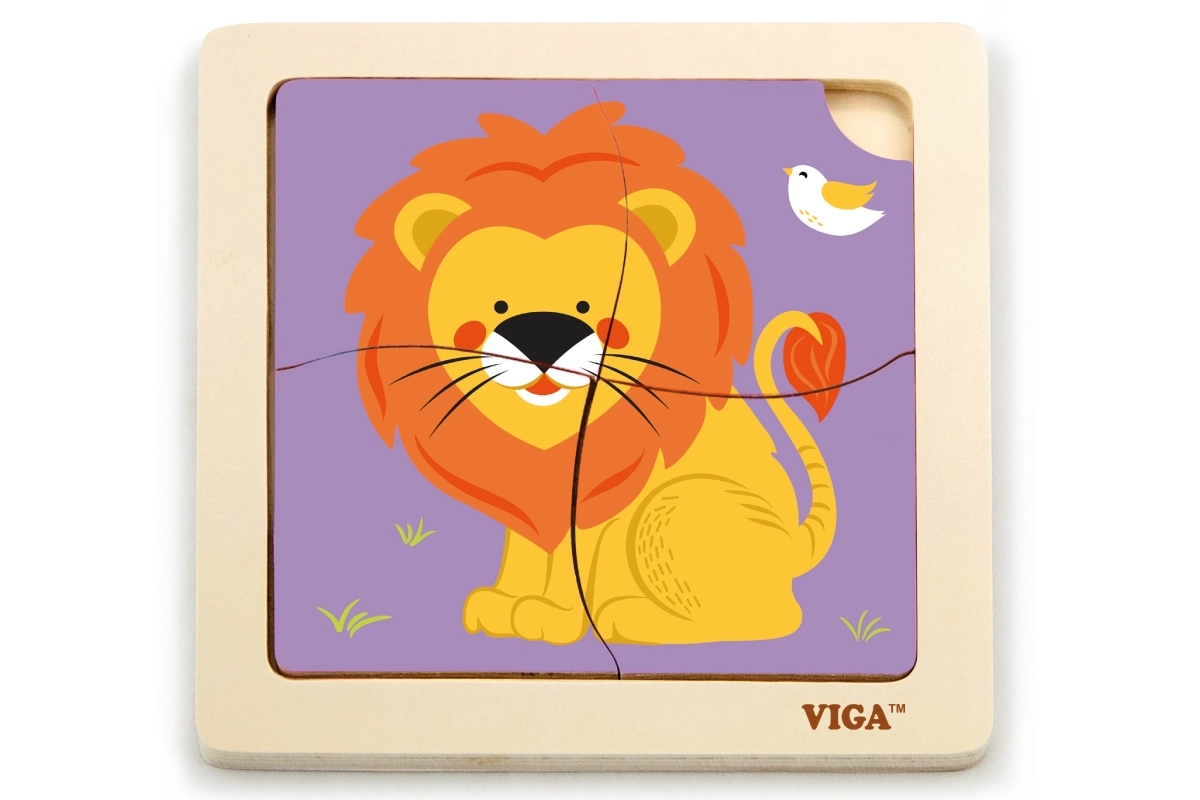 Fából készült oroszlán puzzle, 4 darabos